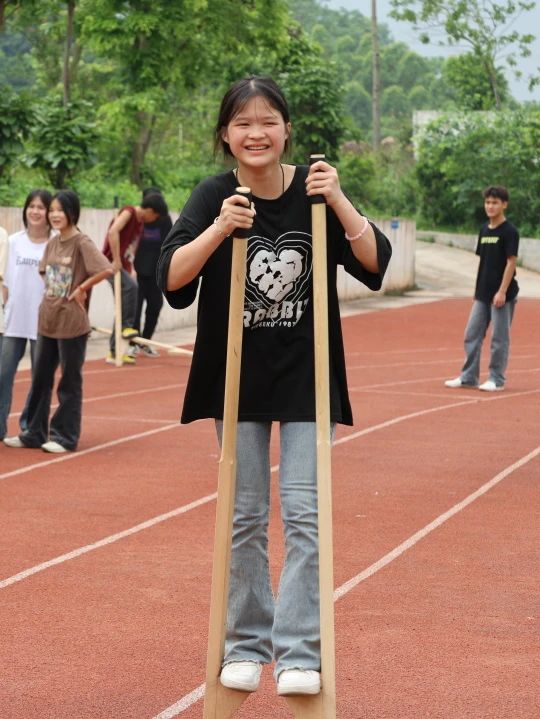 ⬆图/体育竞技比赛活动现场活动现场热闹非凡,学生们热情高涨,发挥勇于挑战的精神,积极参与踩高跷、三人足体育竞技比赛。