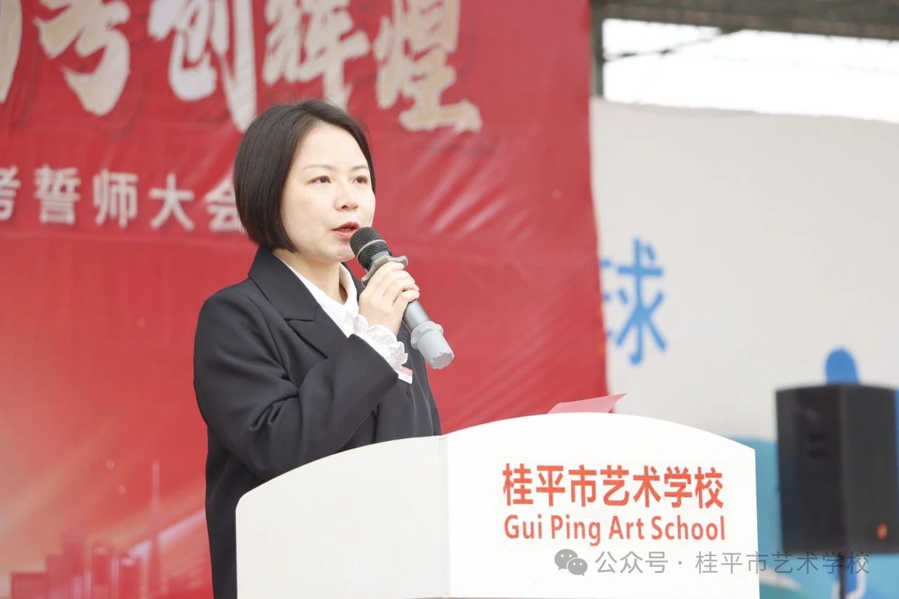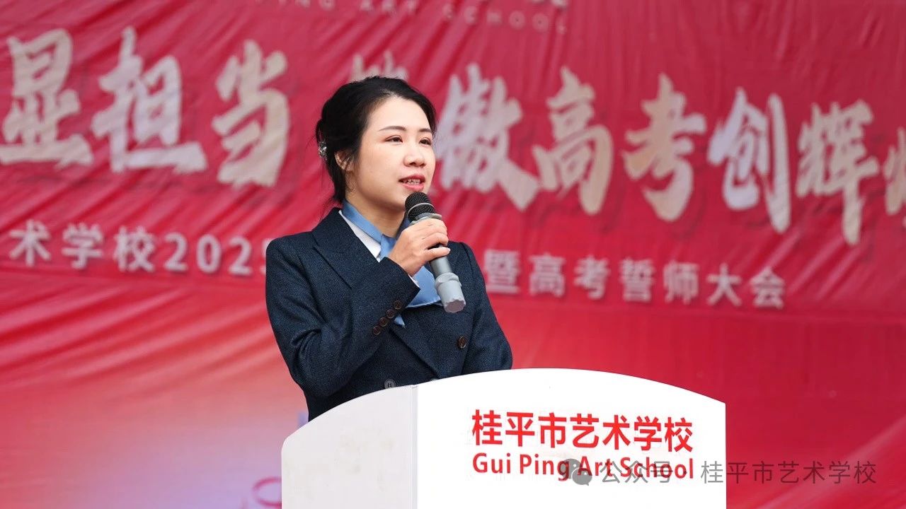 韦佳敏老师代表全体高考班教师郑重承诺:“我们将全力以赴,为学子保驾护航,共创高考辉煌!”