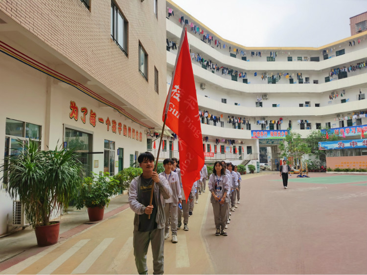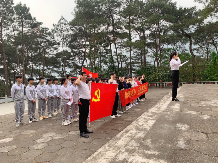 优秀学生代表们身穿校服,手举校旗从学校出发,一路前行到桂平市革命烈士纪念碑公园。为启迪后辈,振兴桂平,1981年广西壮族自治区人民政府批准建设革命烈士纪念碑,树立黄日葵、胡福田烈士雕像,纪念革命烈士433名,缅怀先烈光辉业绩,继承先烈革命精神。