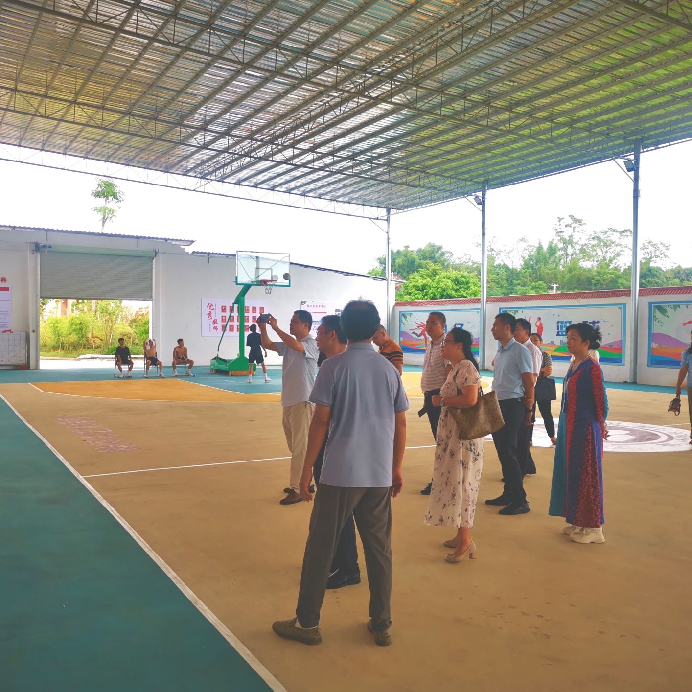 陈校长带领各级领导先后参观了学校体育馆、室外操场、文化走廊、教学设施等教学场地。