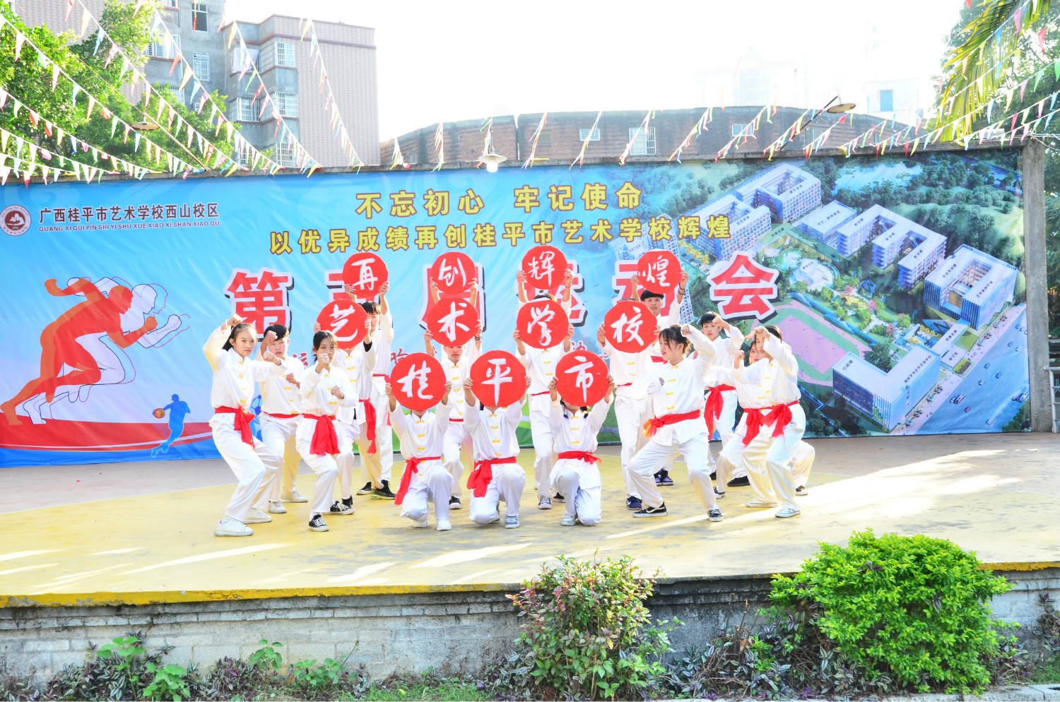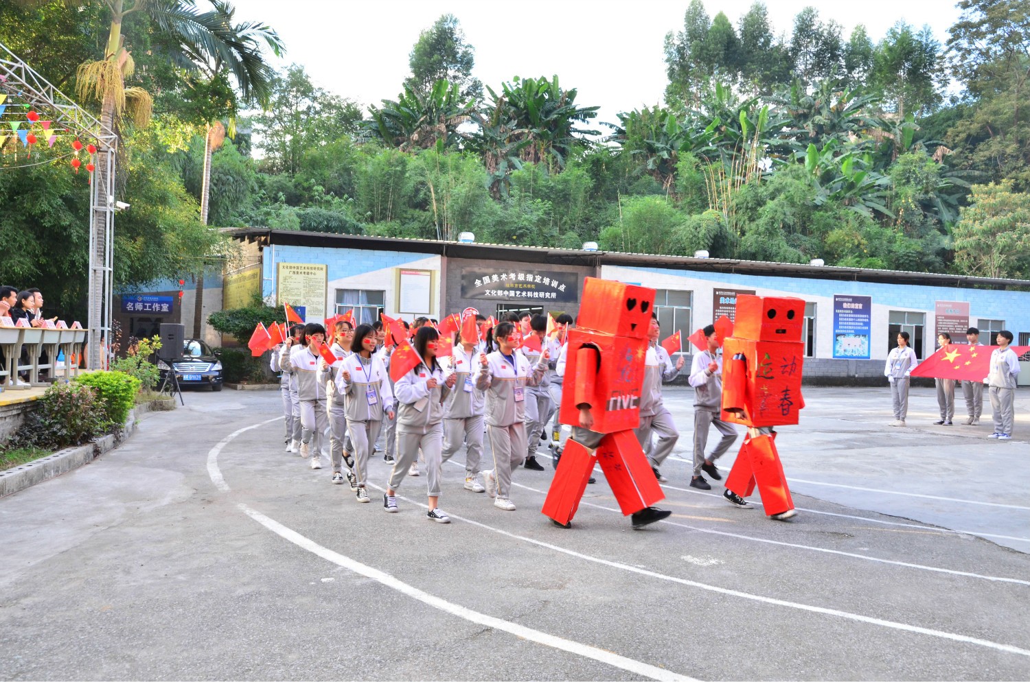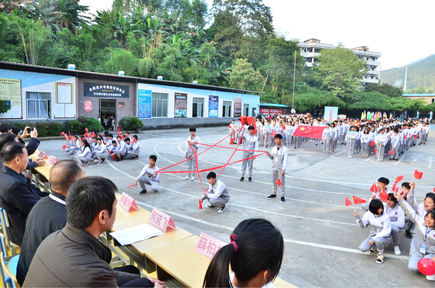 鲜花队、武术队同学们带来欢腾的开场表演