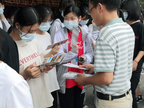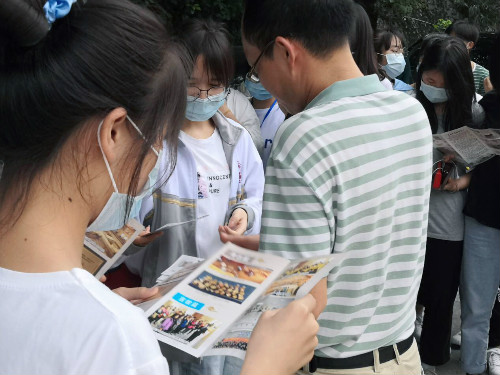 (现场给同学们分发宣传资料)