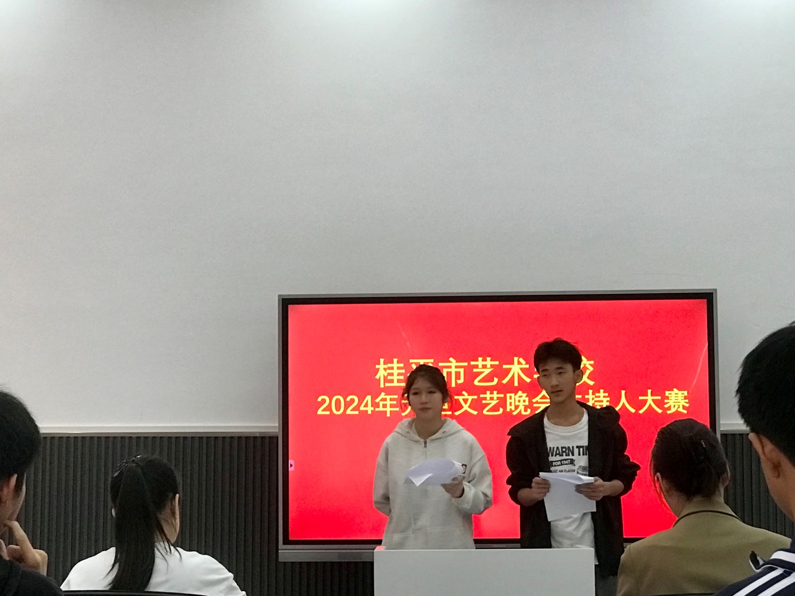 为了活跃校园文化生活,创造良好的校园文化氛围,提高同学们语言规范意识,自觉规范使用国家通用语言文字的意识和自觉传承弘扬中华优秀文化意识。我校在2023年12月14日举行了主持人大赛。
